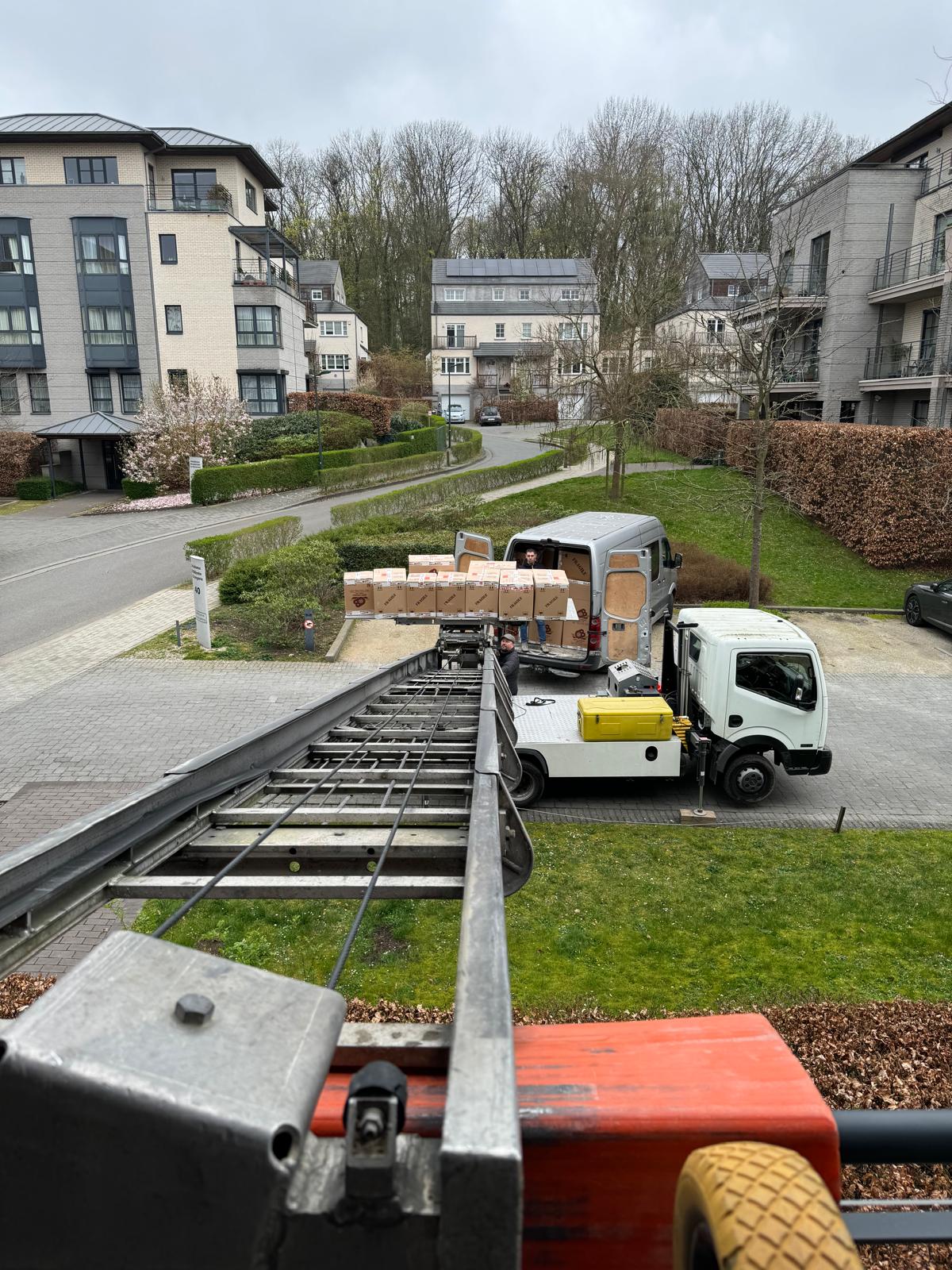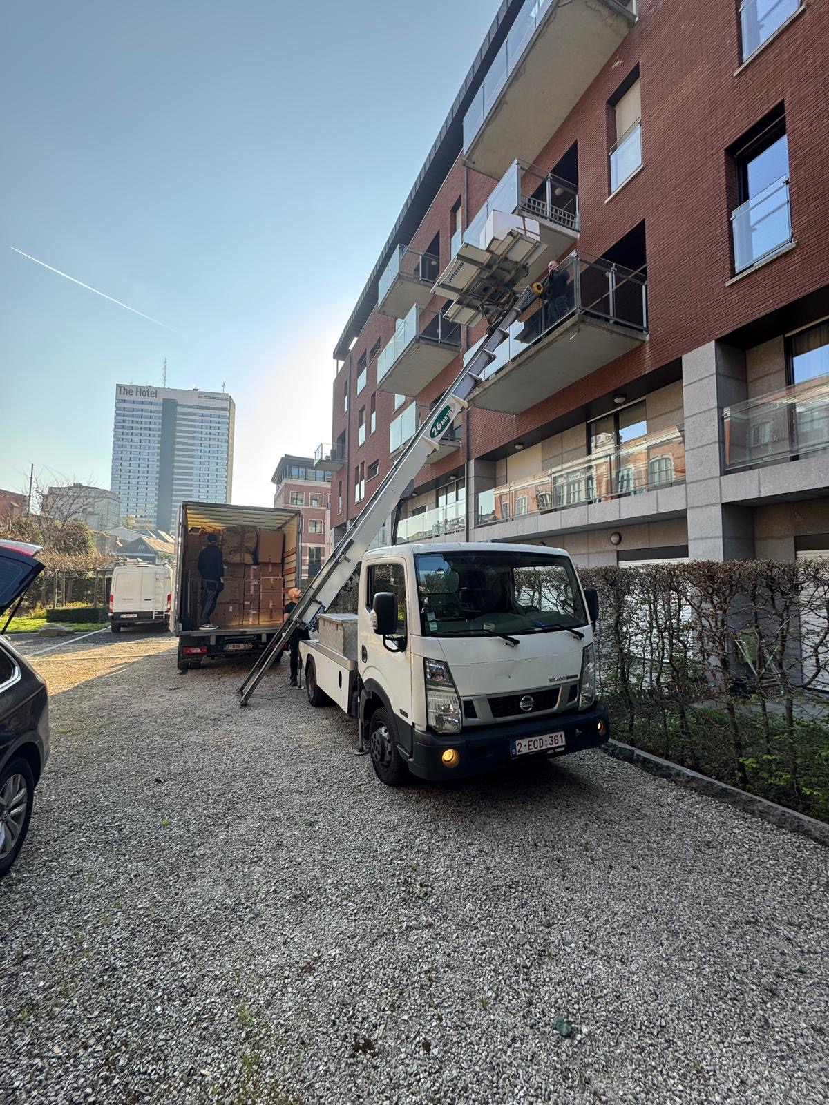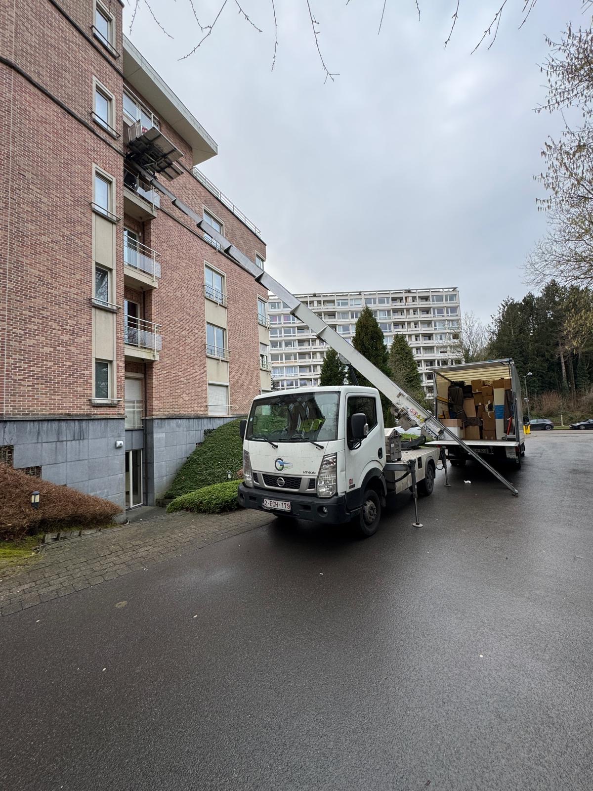 Camion lift avec opérateur disponible pour tous vos déménagements, livraisons et manutentions en hauteur, partout en Belgique.