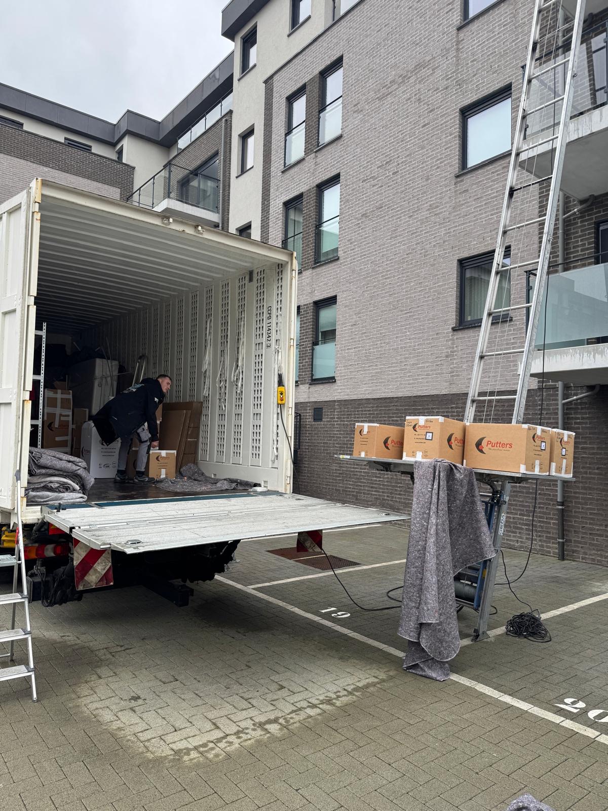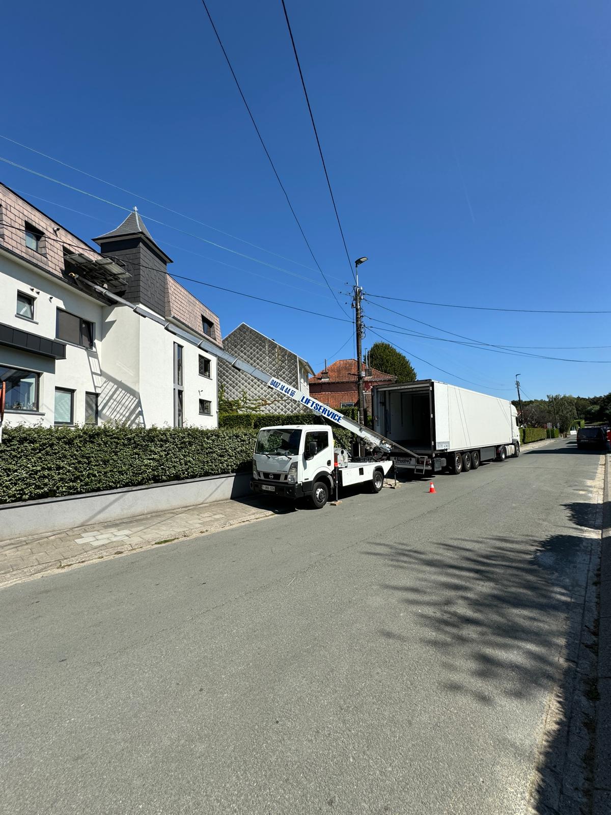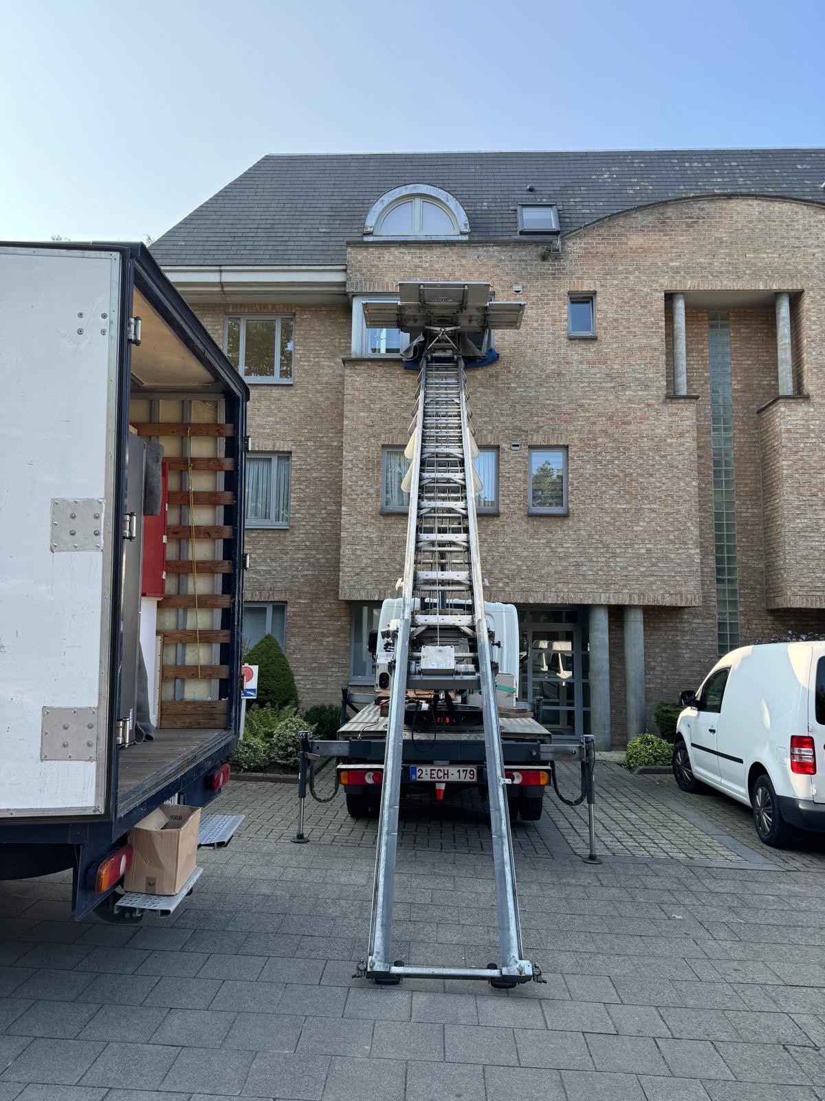 Camion lift avec opérateur disponible pour tous vos déménagements, livraisons et manutentions en hauteur, partout en Belgique.